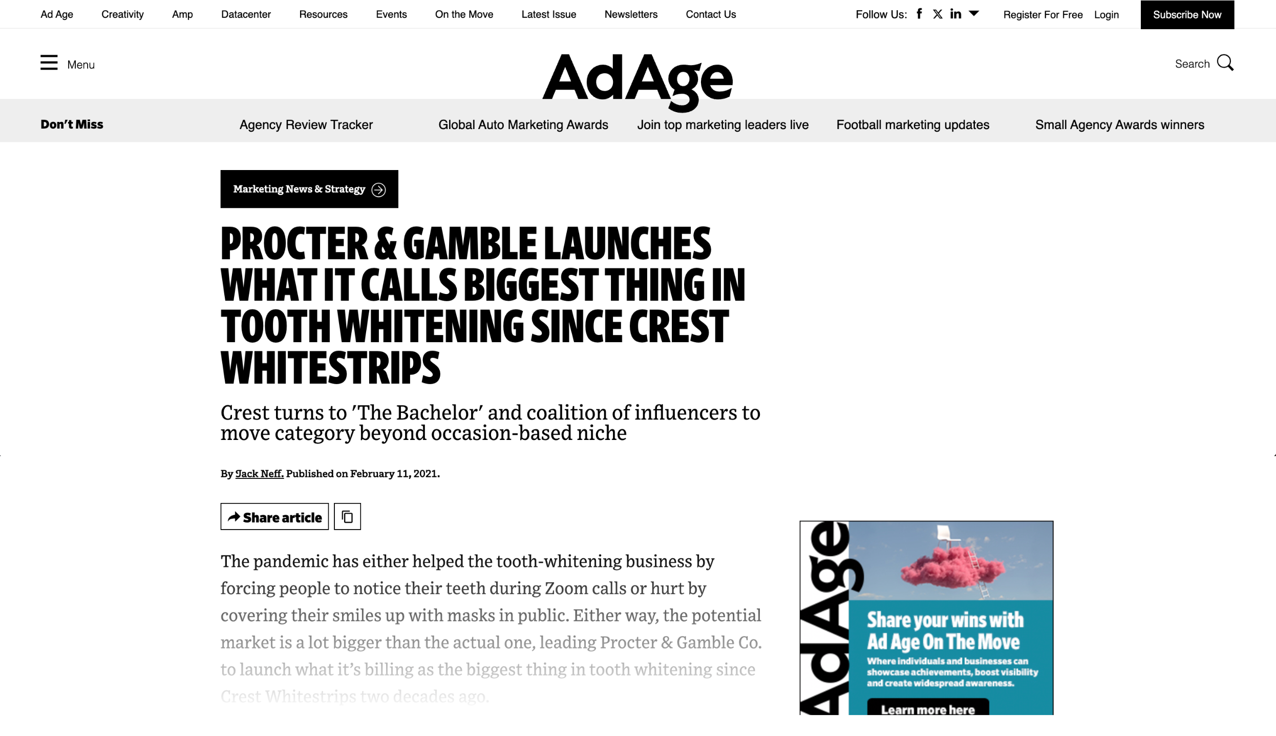 Project note –– This product campaign was developed for Crest while I was a part of the DuMont Project marketing consultancy team.
